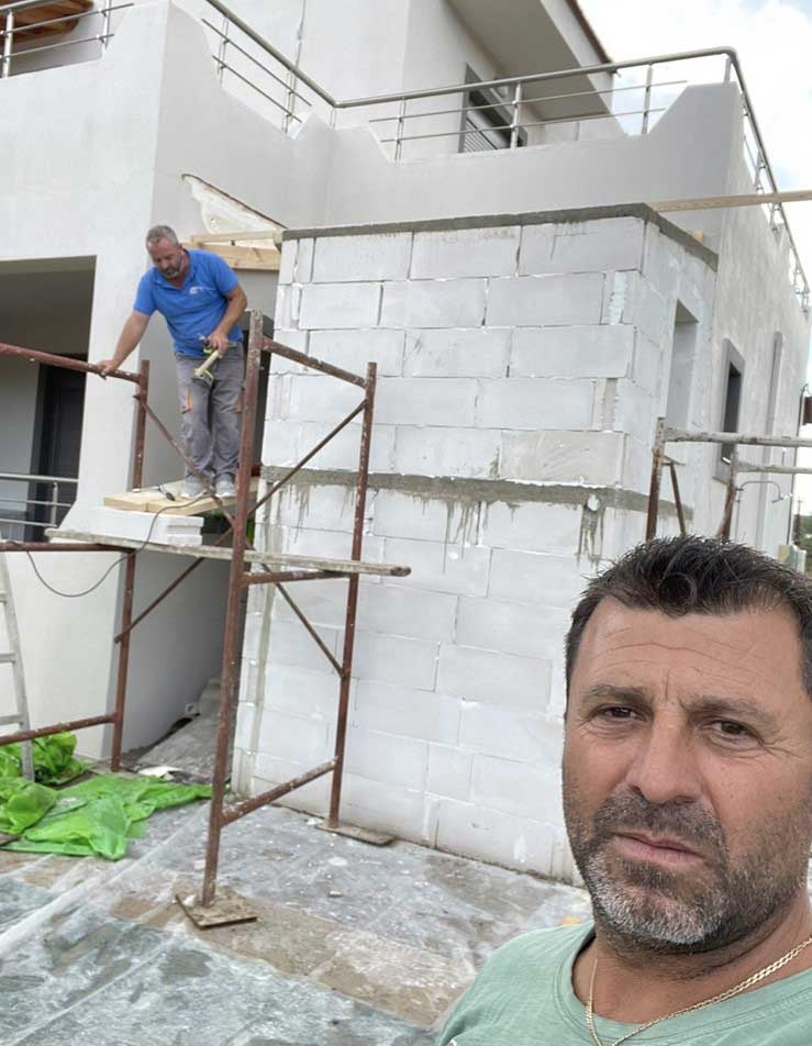 Το συνεργείο της ΜΕΡΝΤΑΝΑΙ ΓΚΑΖΜΙΡ δραστηριοποιείται ακόμη και στα χτισίματα, τα σοβατίσματα και τις πέτρινες κατασκευές, σε όλη τη Ρόδο, για κατοικίες και επαγγελματικούς χώρους.